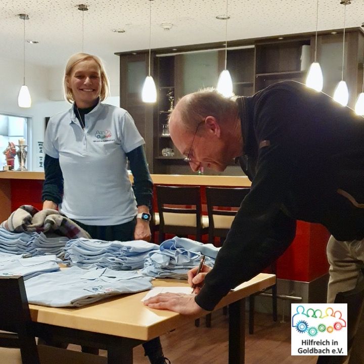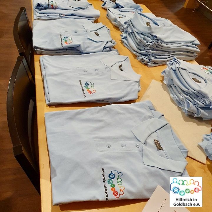 Als Dankeschön, zum Kennenlernen und zum Erfahrungsaustausch lud die Leitung des Sozialvereins die aktiven Helfer/innen in die Sporthallengaststätte ein. Neben einem kleinen Imbiss erhielten die engagierten Frauen und Männer ein Poloshirt mit einem aufgestickten Vereinslogo auf der Vorderseite und einem Aufdruck des Vereinsnamens auf dem Rücken. Mit diesen Poloshirts ist uns zusammen ein einheitliches Erscheinungsbild möglich. Die Helfern/innen können damit ihr Engagement und ihre Zugehörigkeit zum Helferkreis kenntlich machen.