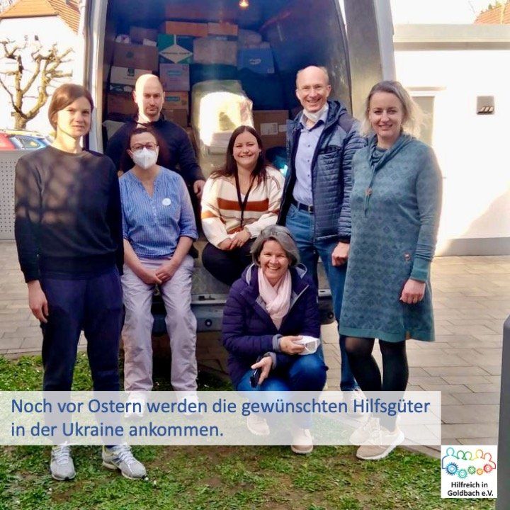 Ein Ukrainer kam am vorangegangenen Wochenende nach Goldbach. Auf den am Donnerstagnachmittag, 07.04.22 spontan veröffentlichten Aufruf für Hilfsgüter, wurden bereits bis Samstagmorgen eine große Menge an Hilfsgütern im Mehrgenerationenhaus abgegeben. Dort wurden sie entsprechend zusammengepackt und sortiert. Am Montag kamen noch weitere Spenden hinzu. Am Dienstag wurden die Spenden von ihm mit in die Ukraine genommen.