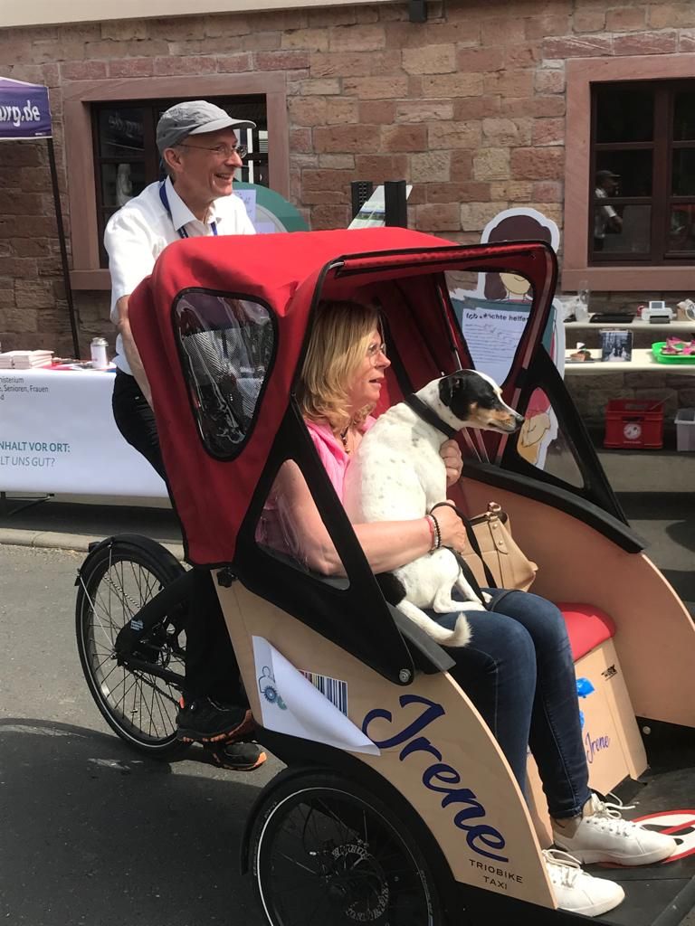 Mit einer Fahrrad-Rikscha des GESTA e.V. aus Aschaffenburg waren Fahrten durch unseren schönen Ort möglich.