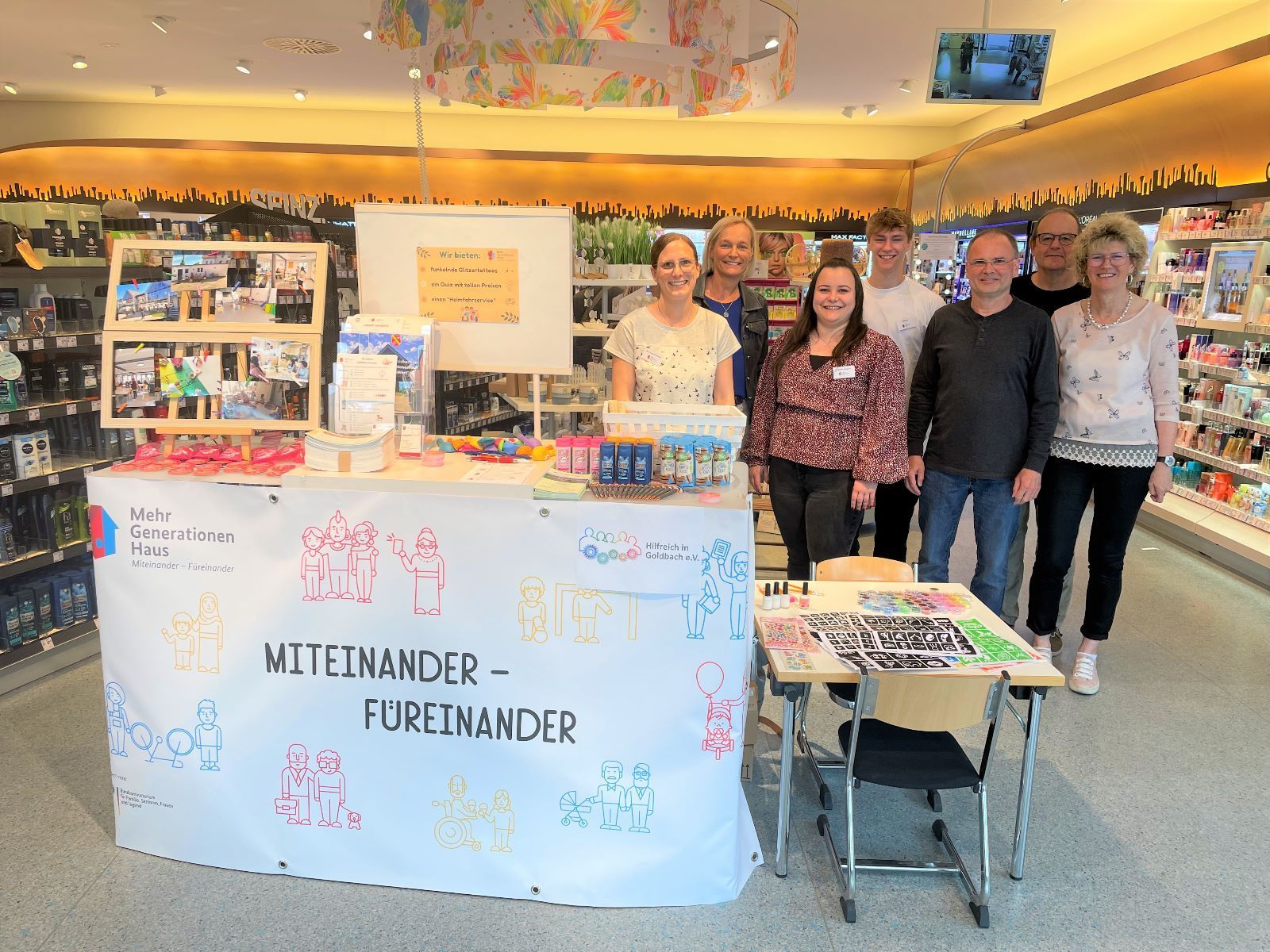 Der dm-Drogerie Markt unterstützt rund 3000 Projekte, die Zukunft gestalten. Vom 19.05. bis 31.05. konnte im dm-Markt in Goldbach für unser Mehrgenerationenhaus 'Lebenswert' abgestimmt werden. Am 23.05. war ein Teil des Teams direkt vor Ort. Dort erfreute man die jüngere Generation mit Glitzertattoos, ein Quiz rund um das MGH war für Ratefüchse vorbereitet und 'Hilfreich in Goldbach e.V.' bot einen Heimfahrdienst für ältere Menschen an.