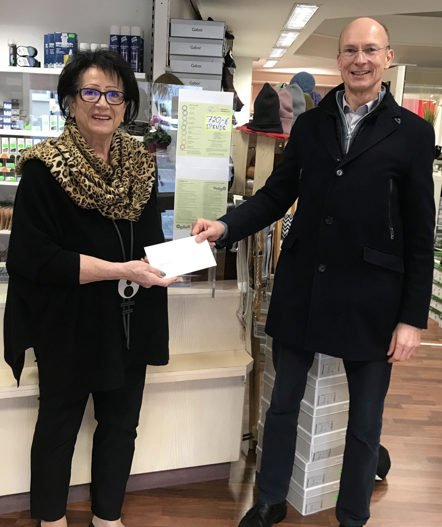 Zum Ende der Aktion im Dezember bis Anfang Januar erbrachte die Tombola einen Betrag von 720,- €, den die Inhaberin des Schuhhauses, Frau Windischmann, dem Sozialverein Hilfreich in Goldbach e.V. überreichte.
